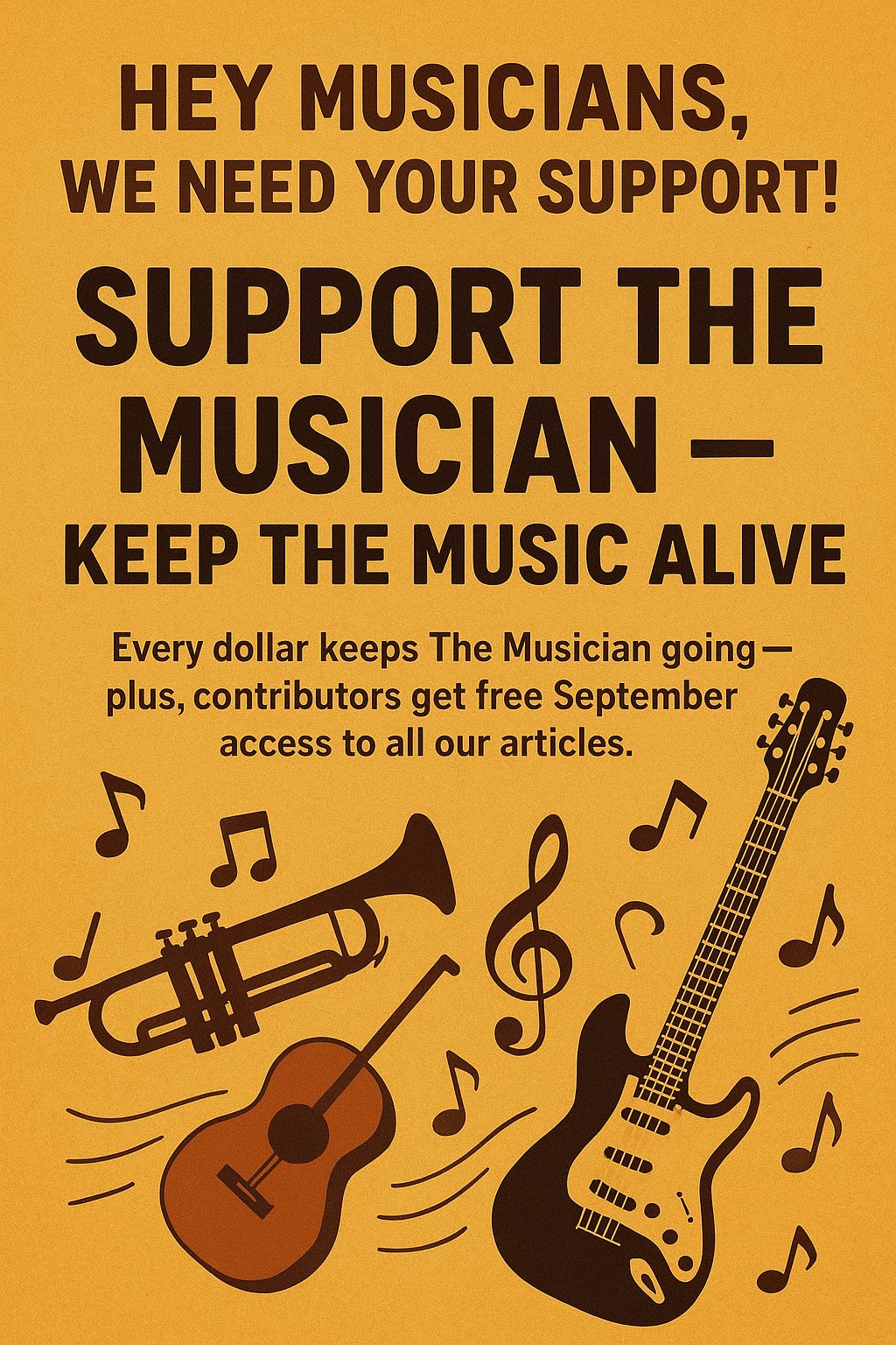 A big thank you to everyone who has already contributed to The Musician! Your support means a lot and helps us keep things moving forward. Every dollar truly makes a difference.